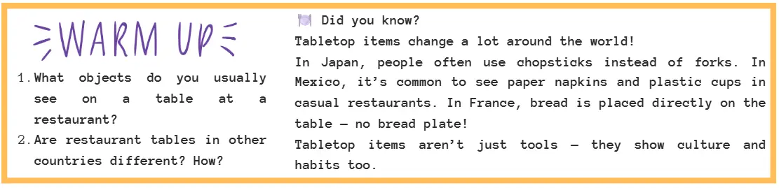 Tabletop Items vocabulary